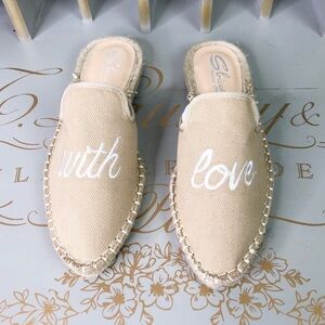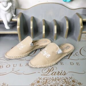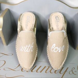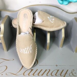 Sbicca vintage collection espadrille mules with logo in white across the front with love new without box.