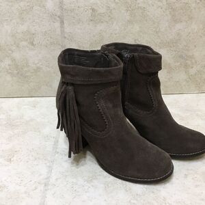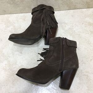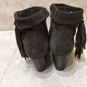 EXCELLENT CONDITION SBICCA WYNONNA SUEDE LEATHER ANKLE BOOTS WITH FRINGE IN BROWN