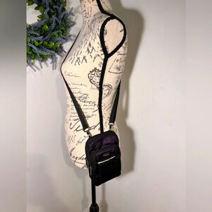 SBS, adjustable crossbody 14-28” nylon strap , 2 padded zip compartment, one center zip compartment, one outer reflective pouch, belt loop and pen holder in the back, 5x8 gunmetal hardware