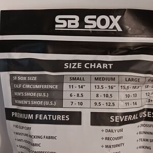 These New black SB Sox compression socks are a size Medium and fit a men's size 8-10.5 and a women's shoe size 9.6-12.5. All offers are welcome.