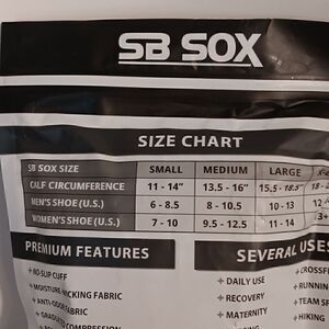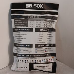 These New black SB Sox compression socks are a size Medium and fit a men's size 8-10.5 and a women's shoe size 9.6-12.5. All offers are welcome.