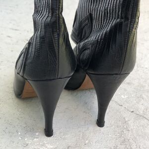 Vintage Edward design and handmade in Italy. I have just had new tabs put on them. Check out the pictures gorgeous boots. Heel height is approximately 3 1/2