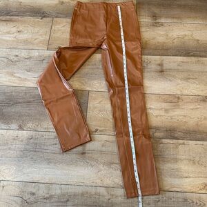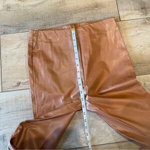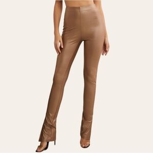 SBetro High Waist Slit Hem Faux Leather Light Brown