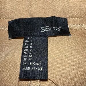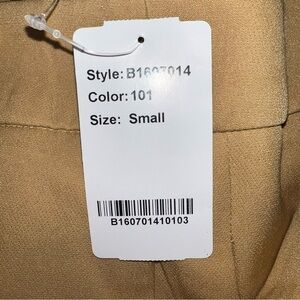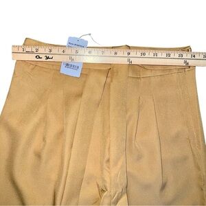 SBetro by Suzanne Betro NWT tan side hidden zipper flat waistband with attached belt pockets wide straight leg size small perfect condition unworn pleats perfect for work or out dress up or down see photos for measurements