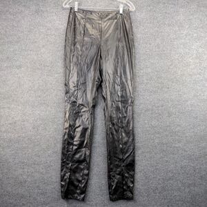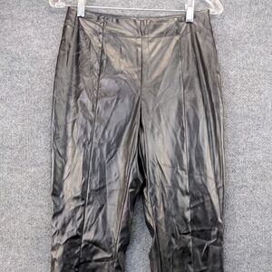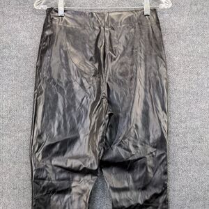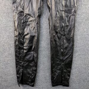 SBetro Womens Faux Leather Pants Black Medium Flat Front Slit Hem Side Zip