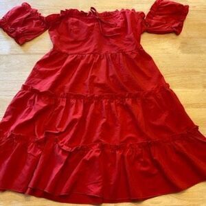 SBetro Red Off the shoulder Puffy sleeves Dress Above the knee Perfect for summer Size medium Great preowned condition
