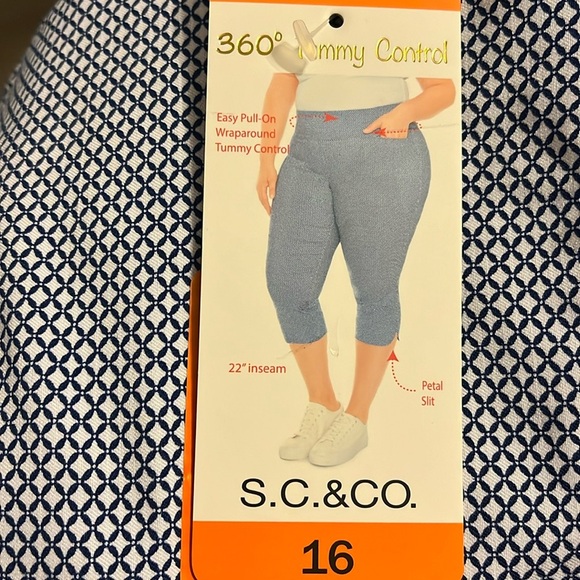 S.C. & CO. Women's 360 Tummy Control Capris, Blue Geo, Size 16