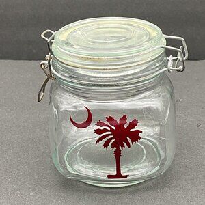 SC State Emblem Glass Jar Snap Lid Palmetto Tree Crescent Moon Storage Tea
