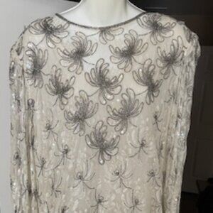 SCALA 100% Rayon Beaded Sequined Tiered Tea/cocktail length dress