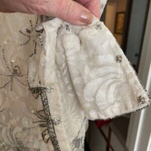 This embroidered 100% Rayon Beaded Sequin tiered dress is a stunning option for formal occasions. The long-sleeve dress features a round neckline and a zip closure, made of 100% rayon. The dress is adorned with intricate beaded accents, with a maxi length and a vintage theme that exudes a classic princess style.