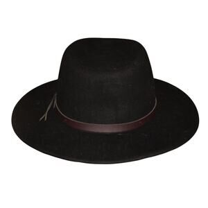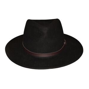 SCALA $70 Black Wool Felt Wide Brim Fedora Safari Hat Leather Band S / M