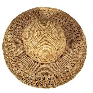 EUC women's OS SCALA Floppy Woven Straw Beaded Accented Summer Sun Hat