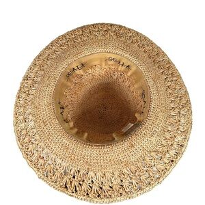 SCALA Beaded Accent Woven Straw Boho Summer Sun Hat