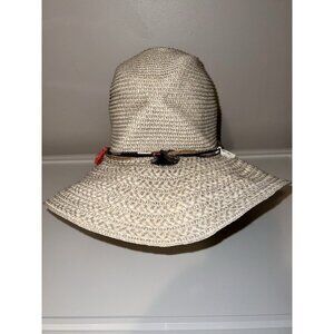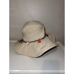 SCALA COLLEZIONE Womens Paper Wide Brim Sun Taupe Beaded Strap One Size