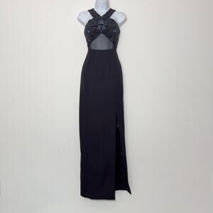 SCALA Collection Vintage 90s Y2K Sexy Sequins Beaded Black Dress Size 6 S Small