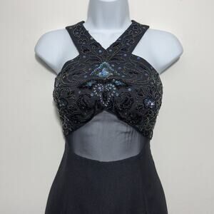 SCALA Collection Vintage 90s Y2K Sexy Sequins Beaded Black Dress