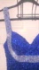Head turning royal blue gown. Perfect for homecoming, Prom or any black tie event you want to turn heads at! Is missing a little bit of the sequins at the top of the slit. Also some strings on the strap needs to be tied off. Both these are only seen when up close to dress. See images