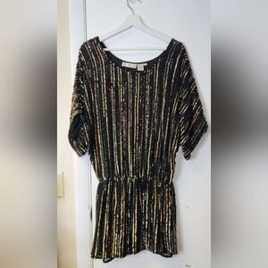SCALA Vintage Black Metallic Gold Silver Copper Sequins Tunic Mini Dress Size 0