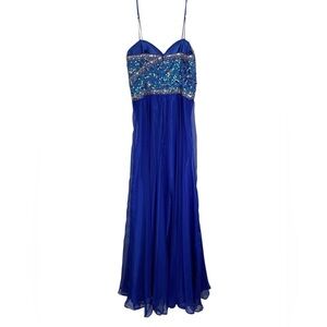 SCALA Y2K Beaded Babydoll Maxi Dress Gown 8 Royal Blue Whimsygoth Fairy Prom