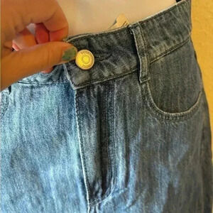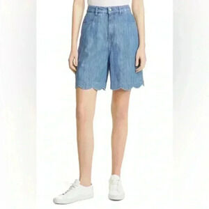 SCALLOPED HEM DENIM SHORTS IN BLUE
