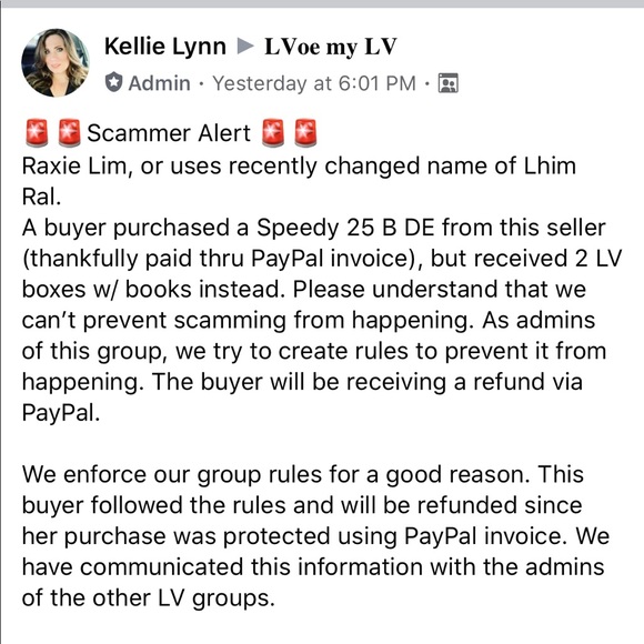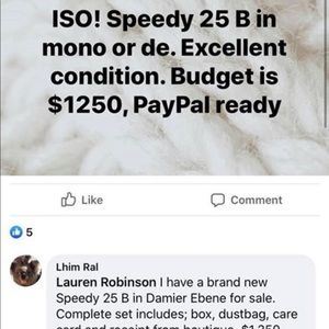 I bought a Speedy B 25 from this girl (who lives in WA state) for $1250. I was sent notebooks. A claim has been filed. Please be vigilant and use either Poshmark or 🅿️🅿️ invoice!