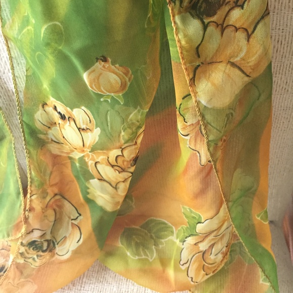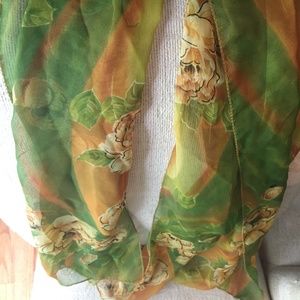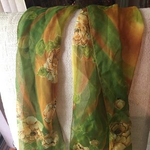 Nothing says BOSS like this beautiful green and orange scarf with flowers to show off your feminine side! Brighten up any dark business attire and look sharp doing it! approx. 20" W x 62" L
