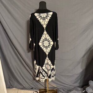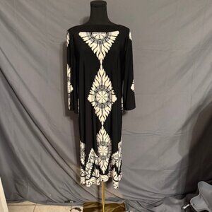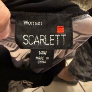 The SCARLETT Dress in size 14W is a stylish and elegant option for plus-size women looking for a chic outfit. This off-the-shoulder dress features long sleeves and a pullover closure for easy wear. The black and white color scheme adds a touch of sophistication, while the overall dress length offers a flattering silhouette. Perfect for various occasions, this dress from the brand Scarlett combines comfort and style effortlessly.