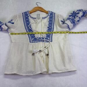 SCARLETT POPPIES Naxos Emroidered Balloon Sleeve Bohemiam Top Blouse Size XS