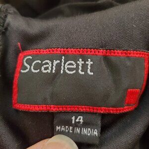 SCARLETT SZ 14 Women's Black Blouson Draped Rhinestone Embellish Cocktail Dress