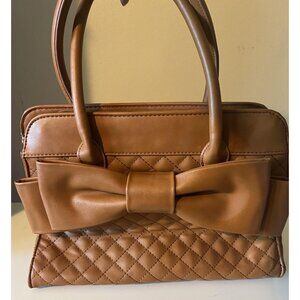 SCARLETTOWN Handbag Womens Brown Quilted Bow Satchel Tote Purse Top Zip Feet