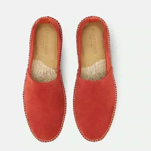 SCAROSSO Made in Italy espadrilles Pablo Red Rust Suede size 37 never worn no tags branded 100% leather cushion heel insole handmade rope sole rubber tread