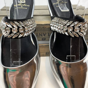 SCB Collection by Suecomma Bonnie Silver Crystal Embellished Mules Slides Size 6.5