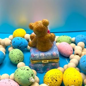 SCC Collectible Porcelain Teddy Bear On Ottoman Hinged Trinket Box