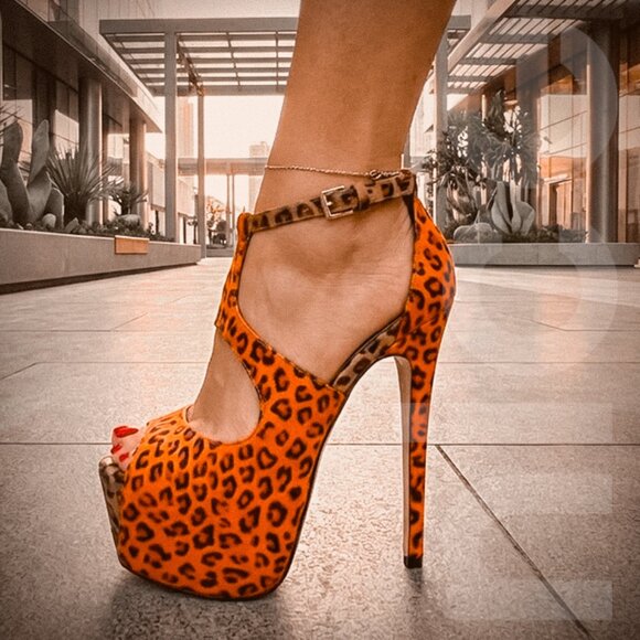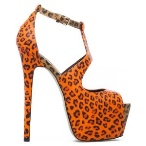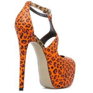 Colorblocking gives in to its wild side on this sky-high, leopard-print platform by Scene. Leopard-print, faux-leather platform peep-toe pump by Scene with adjustable strap