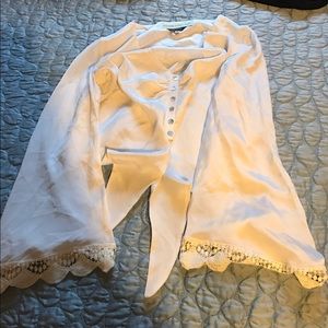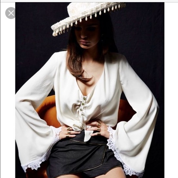 Never been worn and in perfect condition (minus some wrinkles bc I have moved) beautiful lace detailing with bell sleeves!