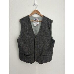 SCHAEFER Western Wool Vest Size Large Gray Herringbone McClure Style 707 USA
