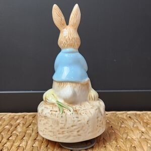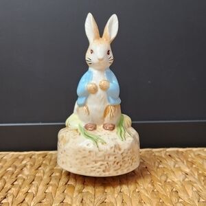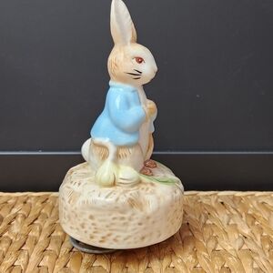This little figurine is mounted on a windup music base, and plays the song "Peter Cottontail".