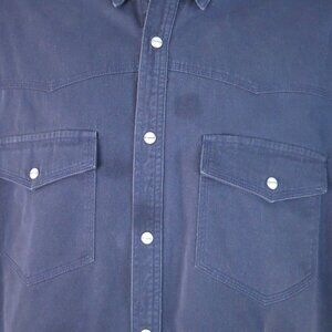 SCHNEE'S Bozeman Montana Heavy Twill Pearl Snap Western Brushpopper Shirt Lg Blu