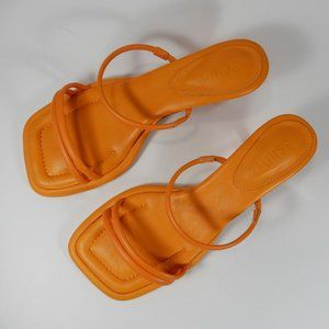 SCHUTZ Agatha Mid Kitten Heel Square Toe SANDALS Size 7 Orange Leather NEW $118