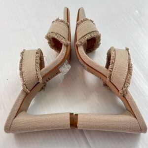 🆕 SCHUTZ Amely Beige Frayed Strap Heels NWT size 7