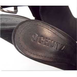 SCHUTZ Black Nubuck Open Toe Ankle Bootie Wedges 7