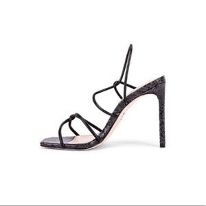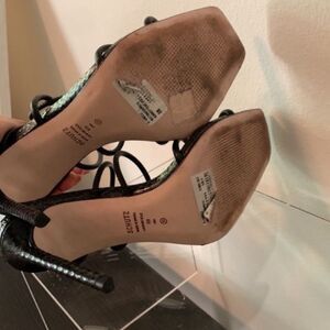 Cute black strappy heel with high stiletto. Perfect for work or gathering. Too high for me but looked great with jeans and nice top! ☺️