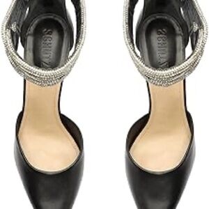 SCHUTZ Black and Silver Ankle Strap Heels