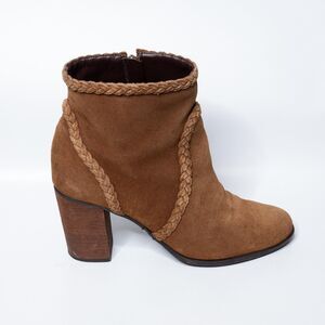 SCHUTZ Braided Ankle Suede Booties Boho Western Boots Cognac Brown Sz 7