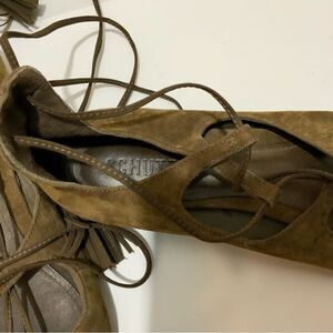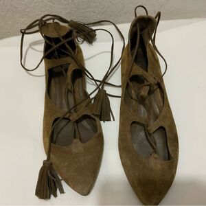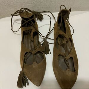 SCHUTZ Brown Suede Pointy Ballet Flat Shoes Gladiator Laces 9