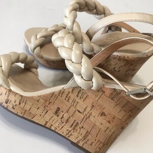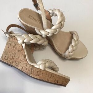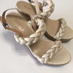 SCHUTZ Chunky braided leather cork wedge slingback platforms Sz 10B 4.5 wedge E