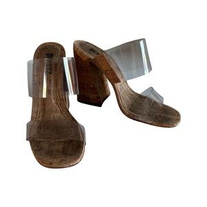 SCHUTZ Clear Cork Heel Sandal Victorie Sz 6B