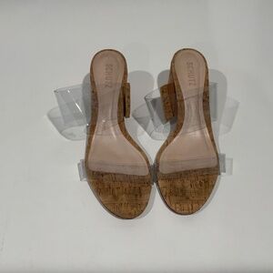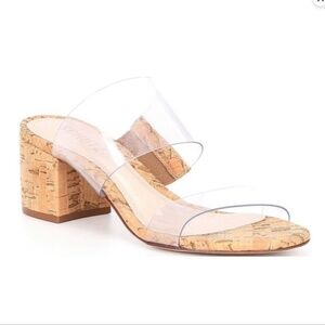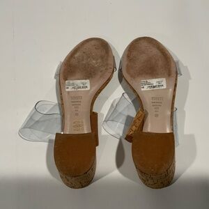 Stylish SCHUTZ sandals with clear straps. Tan cork block heel. Perfect for casual wear.