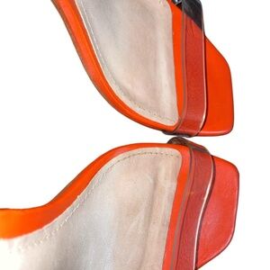 SCHUTZ Dailyn Stiletto Bamboo Heel Sandals Flame in Orange Leather