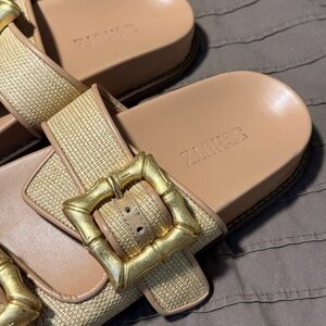 Styled with a woven design, these classic strappy flat sandals from Schutz showcase bamboo-inspired buckles and a comforting platform sole.